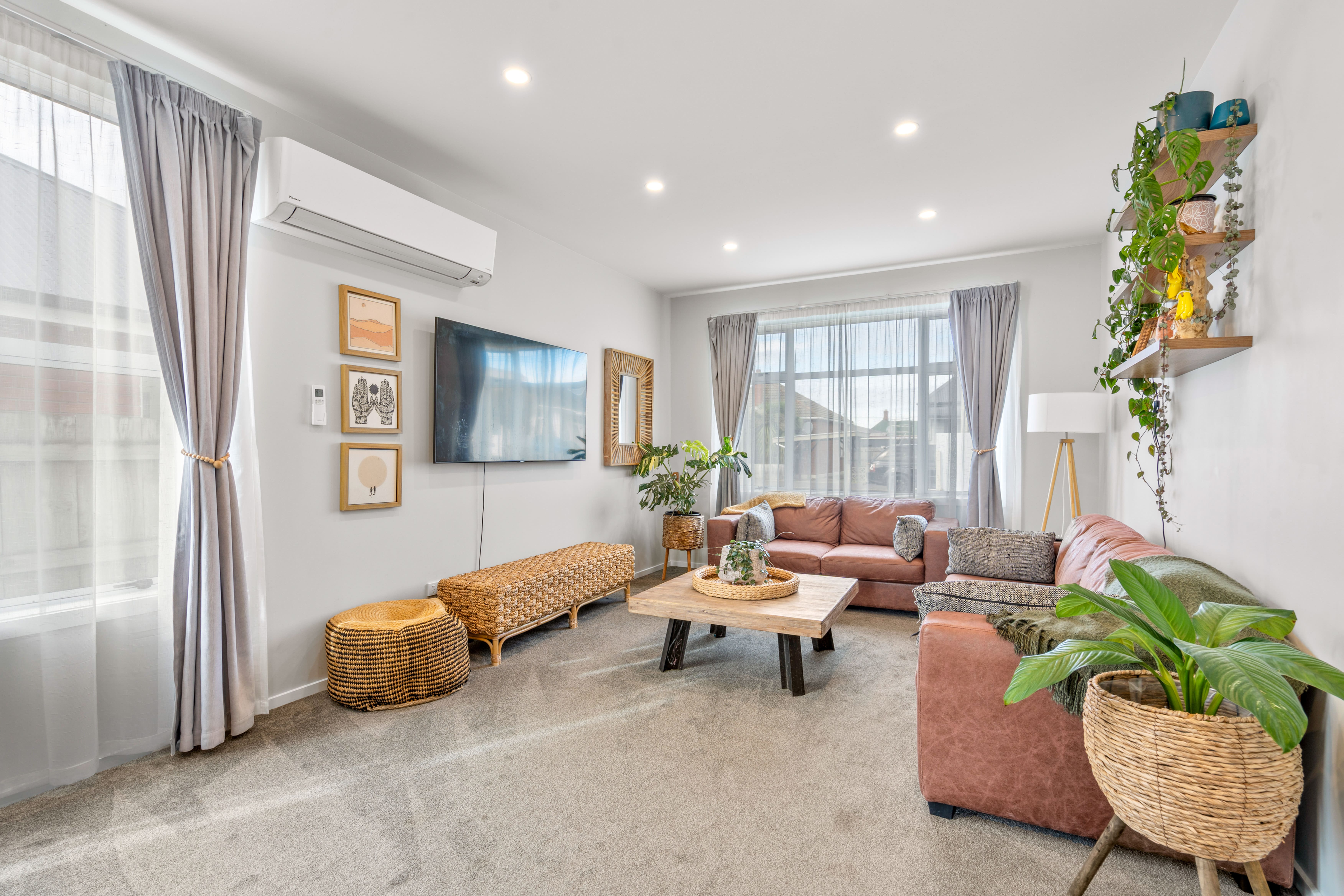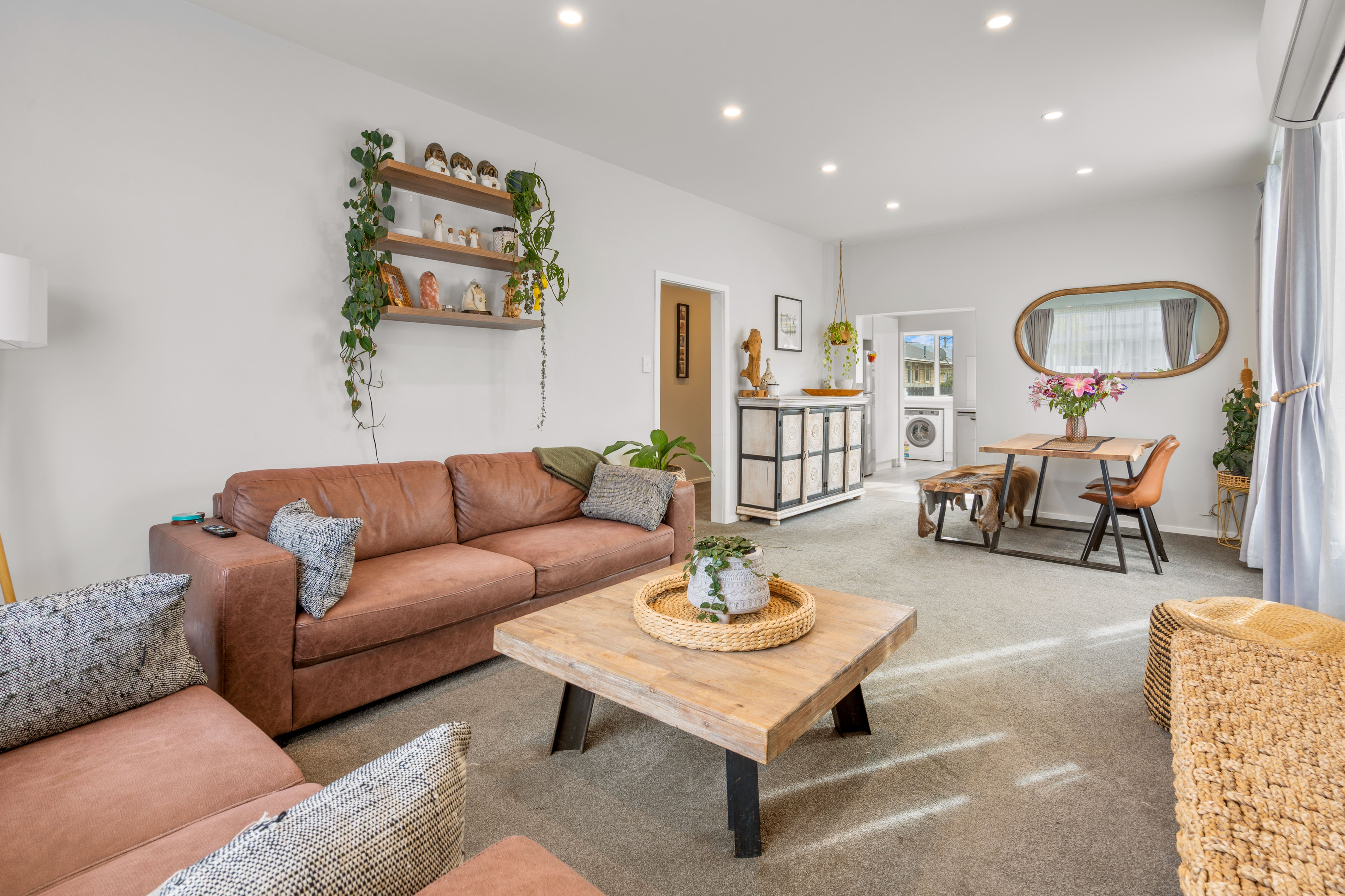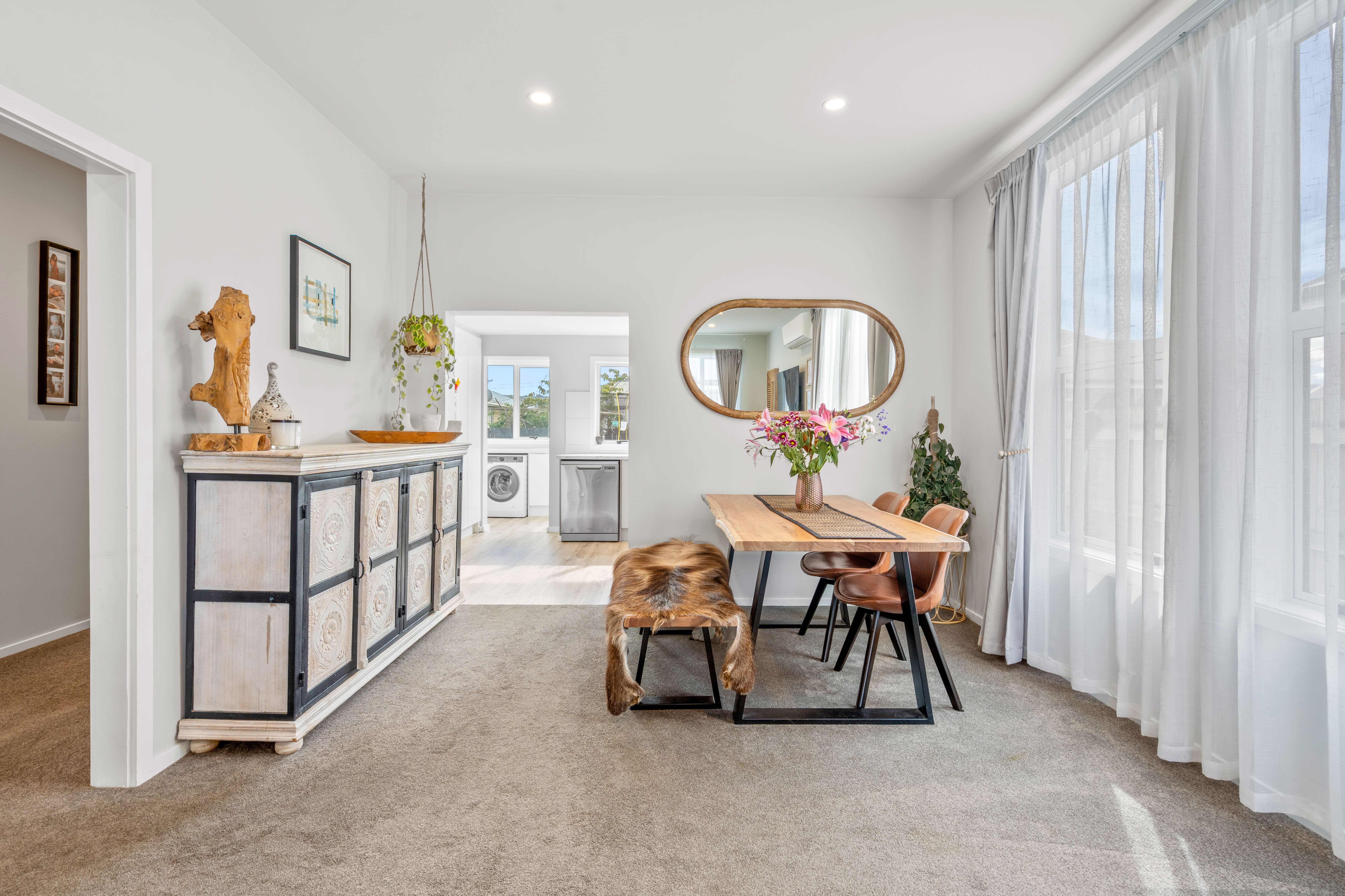 Sunlight pours into the living spaces, creating a bright and uplifting atmosphere that carries throughout the home. At its heart, the kitchen is both stylish and practical—featuring quality appliances, sleek bench tops, and plenty of storage—making it a space where cooking feels less like a chore and more like a joy. Whether it’s morning coffee at the bench or hosting friends for dinner, it connects seamlessly to the open-plan dining and living area, encouraging easy, relaxed living. A brand new, large heat pump ensures year-round comfort, keeping the home cosy in winter and cool through the warmer months.