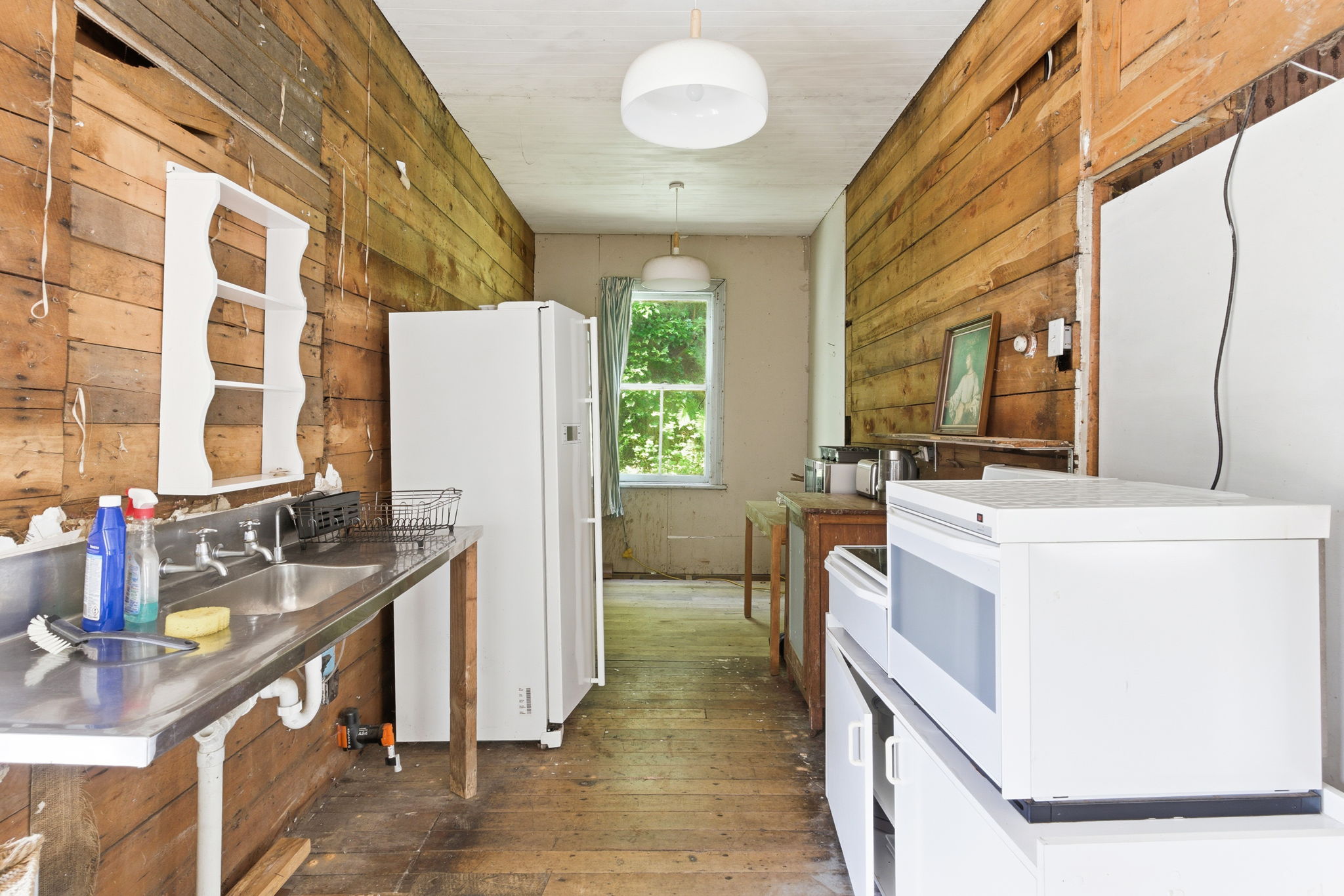 The home currently offers three bedrooms, a spacious open-plan kitchen and living area with a wood burner, and a separate double garage – all positioned on a well-proportioned site bordered by mature greenery for added privacy. While there’s no denying the work required, the rewards are just as undeniable. Whether you’re looking to renovate and restore the character or start fresh with a new vision, this is a location that justifies the effort.